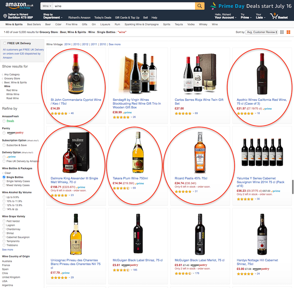 Then there are the charts: best-sellers, most wished-for and most gifted. These provide alternative guidance on what to buy, with each chart containing 100 wines covering almost every conceivable style, from Provence rosé to Marlborough Sauvignon to Aussie Shiraz to plum wine (again – evidently a very popular wine style). Humans might argue that such a broad array of choice is hardly very helpful, but if you can't process that volume of data, then you need a RAM upgrade.