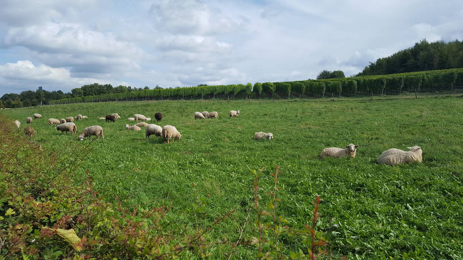 Careful readers that counted only six grapes, you are right. The seventh and latest variety is indeed Cabernet Sauvignon. In 2011, several rows were planted at the northern edge of the vineyards, next to the A79 highway Maastricht–Heerlen. As it turned out, this spot enjoys the most sunshine hours and seemed like a good place to experiment. To put things in perspective, Bordeaux has on average 2,000 hours sunshine per year; Voerendaal has 1,400 hours.