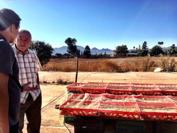Camillo Magoni (pictured below) is from Lombardy, Italy. He studied agronomy and winemaking in Alba and then moved to Baja California in the mid 1960s. After heading up the winemaking at the Mexican winemaking giant L A Cetto for many years, he started up his own commercial label at the ripe age of 73. Mr Magoni is still vibrant, funny and full of life. He loves to experiment and has an experimental vineyard in the valley with over 112 different varieties from Portugal to Greece.