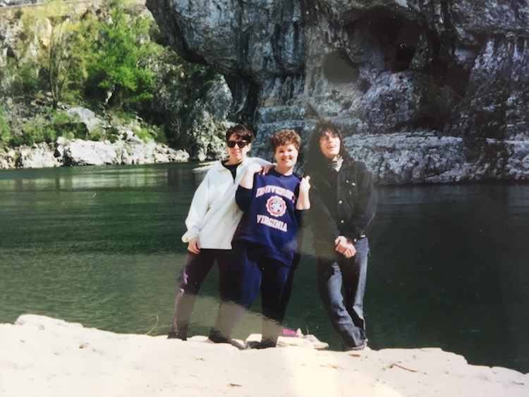 We took the TGV to Lyon to visit a French friend who was eager to show us the natural landscape he called “my country” in English for my benefit. He rented a Twingo for the pilgrimage to a landmark I had become enamored of in my guidebook, the Pont d’Arc. This natural stone bridge arches across a section of the Ardèche River, lying in a canyon carved from limestone. Reaching it requires an occasionally terrifying drive along what Google Maps now tells me is the D290, a narrow, hairpin-curve road that rises to the top of the cliffs and descends to the bottom of the gorge. We listened to the radio and pretended we saw wild boars through the trees (“Attention! Sanglier!”). We stopped for photos, posing closer to the edge than we would today. Arriving at our destination, we landed on a beach and enjoyed a picnic as we watched the kayaks paddling beneath the arch.