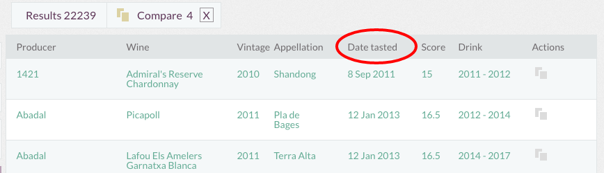 Then, click the top of the date tasted column to show the most recently tasted wines first. Et voilà!