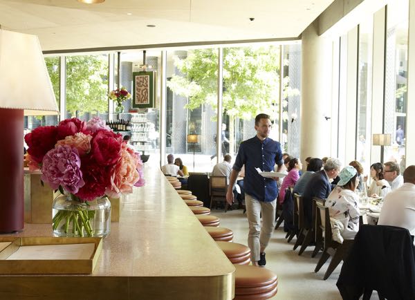 It was important, but far more difficult, to find spaces with a similar feel in London but with a certain amount of artifice he has pulled this off in his cafes in Notting Hill Gate and Clerkenwell. At the former he has installed bright yellow awnings over the front window to give the impression that the sun is always shining while the latter looks over the green in front of a nearby churchyard. This is a view that would not appeal to many restaurateurs’, Granger admitted, ‘but it was a crucial part of what I wanted’. His latest restaurant (pictured below by Petrina Tinslay) boasts tall glass windows on two sides that allow daylight to flood the room at breakfast.