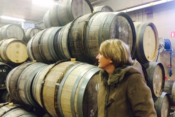 On the coffee table that January day at 10 am was a heap of butter-scented croissants, a bank of Krug’s distinctive tall, broad-waisted tulip-shaped glasses, and a bottle of Grande Cuvée. No one seemed to think it was strange to be breakfasting off one of the most celebrated champagnes on the planet. It felt more like a family breakfast, the family members being Olivier, Maggie Henriquez, who has been president and CEO since 2009, the senior chef de caves Eric Lebel, 53, whose reign in the cellar dates from 1998, and his heiress-designate Julie Cavil, 41 (pictured below surveying barrels fondly). It was the relaxed yet focused relationship between the team that struck me as rather remarkable. I have never seen as many smiles in a workplace before, and this was before the champagne.
