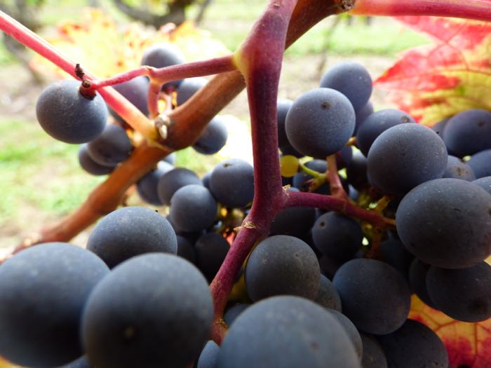 Ripe Cabernet Franc – note the red stems – at Couly-Dutheuil