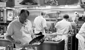 An under-discussed but essential prerequisite to running a successful restaurant. Above, chef Stuart Andrew and his crew finding their groove...
