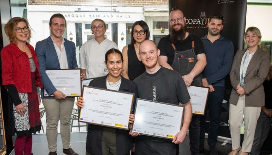Lesson learnt when judging the UK finals of the Copa Jerez sherry-and-food-pairing competition: the kids are alright, and sherry is going to be just fine in their hands. Pictured above with the chefs and sommeliers introduced below are the judges: Tam (far left) and on the far right Spencer Metzger and Roxane Dupuy.
