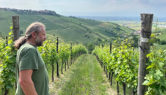 Castello di Cigognola is raising the bar for Lombardy's Oltrepò Pavese region in no uncertain manner. Agronomist Marco Cordani is shown above in vineyards that are being farmed to produce top-quality sparkling wine, and even still Pinot Noir.