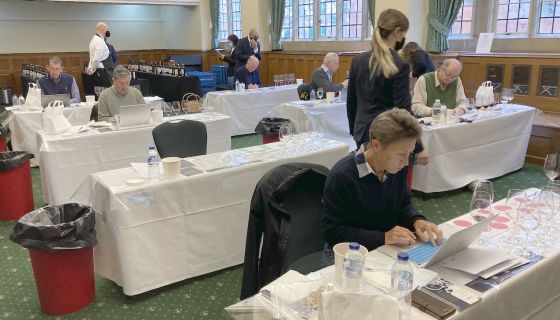 Julia Harding MW in front of Stephen Brook and Andy Howard MW at the UGC tasting in London, October 2020