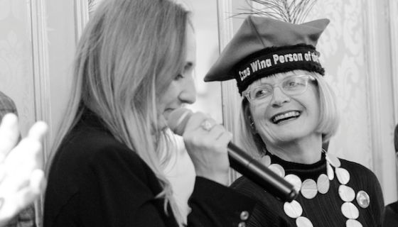 滞在中ポーランド人のワインに関わる女性の団体、コビエティ・イ・ウィノ(Kobiety I Wino)を訪問したが、私はワインのプロの団体でこれほど活発なものに遭遇したことはない。今でもコビエティ・イ・ウィノ・ブランドの製品が私の持ち物のあちこちに顔を見せている。上のモノクロ写真はその協会の長を務めるモニカ・ビエルカ・ヴェスコヴィ(Monika Bielka-Vescovi;彼女はかつてアメリカでソムリエとして働いていた)とのもので、私はツァス・ヴィナが私をワイン・パーソン・オブ・ザ・イヤーに指名してくれた際にくれた帽子をかぶっている(残念ながら白黒ではクジャクの羽の美しさはお楽しみいただけないが)。