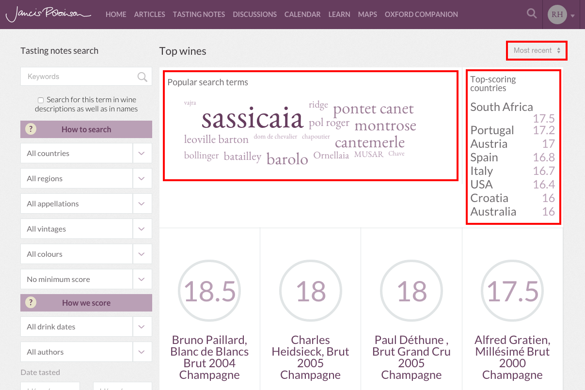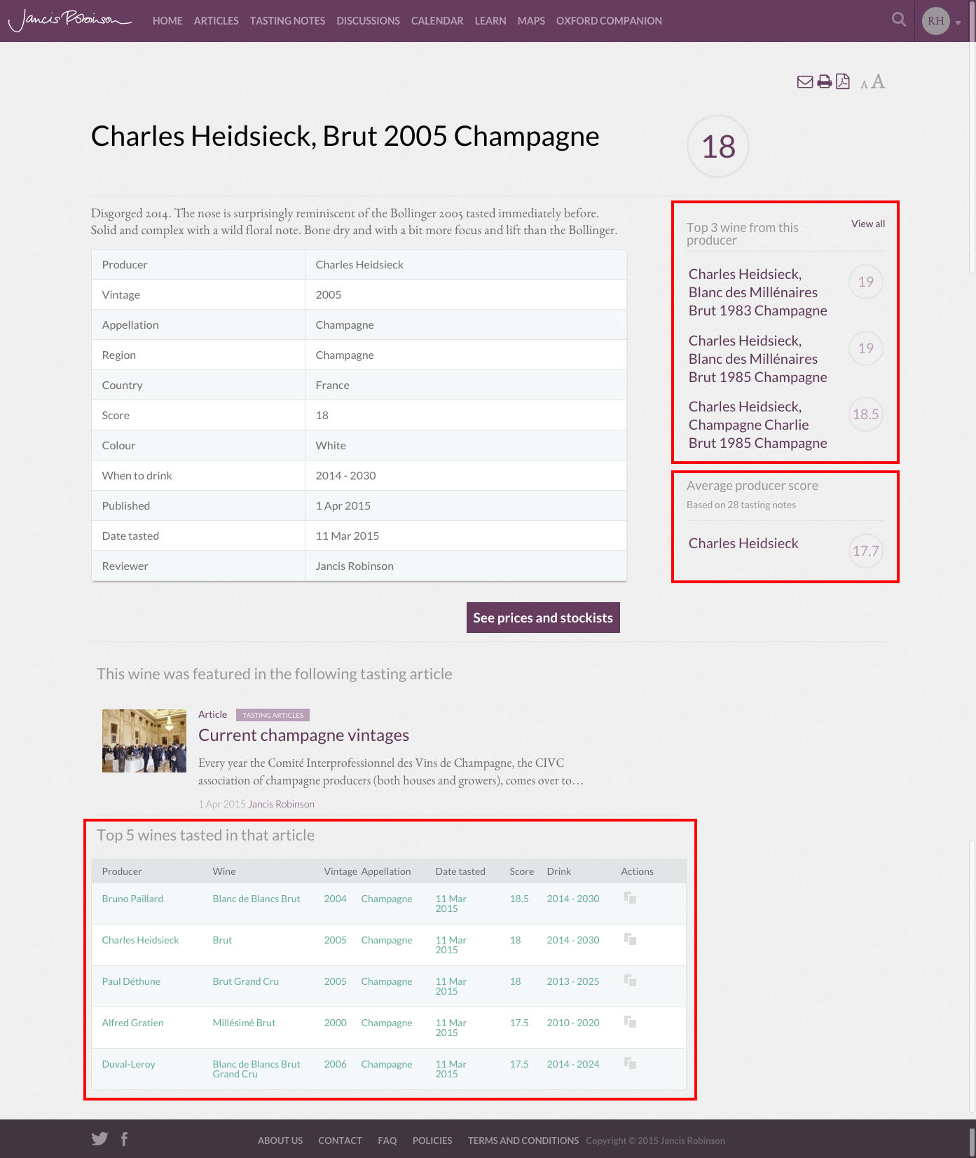 We've also added more detail to individual tasting-note pages, including the top three wines from that producer, the average producer score and the top five wines from that tasting article (if the note was part of an article).