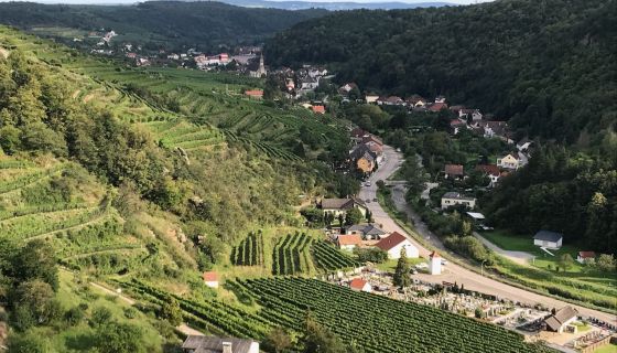 Julia was conflicted about whether to travel to attend this year's tasting of fine Austrian single-vineyard wines but afterwards was very glad she did. She took this picture of the view from the ruined castle of Senftenberg, looking across the Pellingen vineyard to the town. See also More Austrians – mainly 2019 Rieslings.