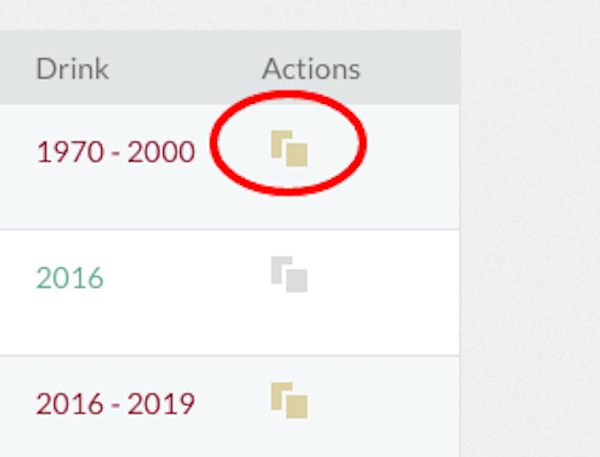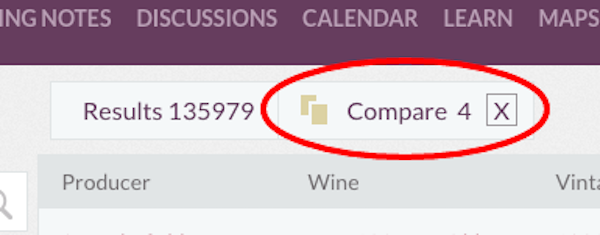 The compare function allows you to flag different tasting notes and view them all together in a single list. To activate this feature, first make a search within our database. Then, click the grey double-square icon that appears in the right-most column of the search results. The icon will turn yellow when it is selected (and you can click it again to de-select). You can select as many different tasting notes as you wish.
