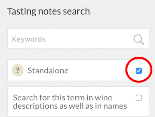 Another feature you might find useful is finding our recently added standalone tasting notes. Standalones are notes which have been entered into the database without appearing in a tasting article. On the tasting notes search page, simply select the standalone checkbox and click the magnifying-glass icon (or hit enter). This will return every standalone tasting note in our database.