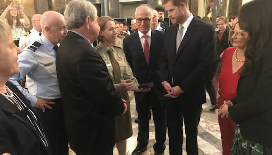 Tam's husband Brad Currin took the photograph above. If you look at the slightly wider version on the home page you can see, left to right, Tam's mother Riette Fuller, Air Commodore Brian Edwards, her father Ross Fuller, Colonel Sue Graham with bible in hand, Malcolm Turnbull, Prince Harry, Lucy Turnbull and Meghan's nose.